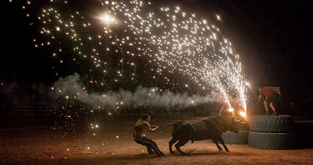 Sí. Y es curioso porque en otro tipo de fiestas la gente está feliz de que vengan a grabar y fotografiar. En cambio, en algunos sitios es como si ya supieran que esto es algo que no deberían estar haciendo e intentan mantener una especie de círculo de omertá para que esto no se sepa. En uno de los festejos que aparecen en el documental, la batalla de las ratas de El Puig (Valencia), nos dijeron que nos iban a romper las cámaras. Esa es la parte que no está tan bonita a nivel de imagen porque una de las cámaras la llevábamos en el cuello como si no estuviéramos grabando. Otras imágenes las grabamos con el móvil. Era la única manera de tenerlo, ya que otros años habían pegado a los fotógrafos, les habían roto las cámaras y habían llegado a situaciones muy violentas.