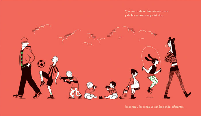 ¿De verdad un libro sobre mujeres y hombres, dirigido a un público infantil, escrito a finales de los setenta sigue vigente? Yo, ingenua, pensaba que no: que si hemos aprendido, madurado, crecido, educado a nuestros niños con otros parámetros… qué se yo… Pues no, 40 años después de su publicación, para mi sorpresa, Media Vaca reedita la colección Libros para Mañana y siguen funcionando igual que cuando el país vivía en plena transición.