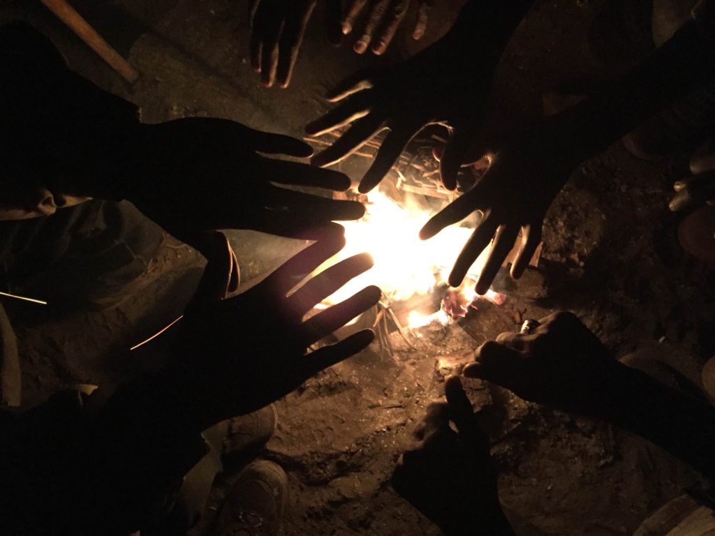 Manos de refugiados sobre el fuego, en la Jungla de Calais. FOTO: JOSÉ BAUTISTA.