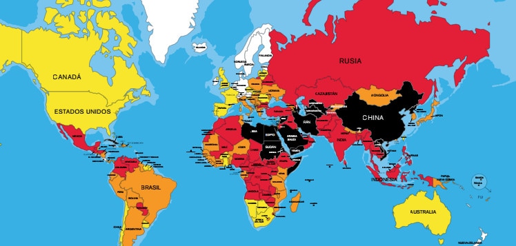El mapa de la libertad de prensa en el mundo se oscurece cada día que pasa. RSF confirma que se ha producido “un aumento del número de países afectados por los males y las plagas que afectan a la libertad de informar en el mundo” hasta el punto de asegurar que “la libertad de prensa nunca se había encontrado tan amenazada”.