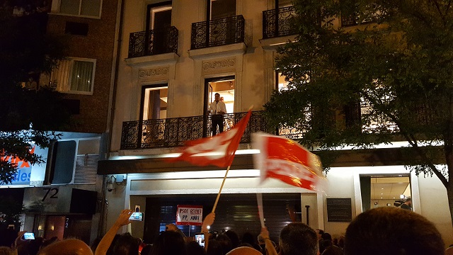 Pocos minutos después, Díaz abandonaba la sede de Ferraz, donde había unas 300 personas concentradas celebrando la victoria de Sánchez. Entre los lemas coreados, «Pedro, amigo, el PSOE está contigo», «Somos del PSOE» y «España, mañana, será republicana».