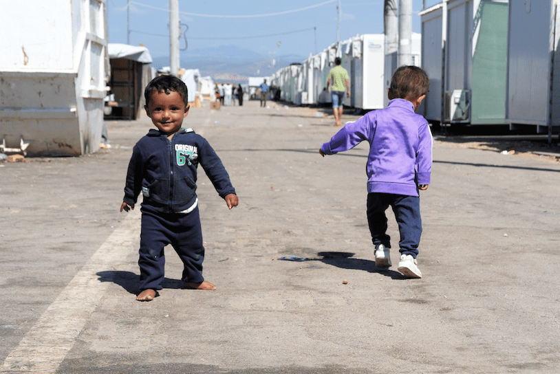 Niños en el campo de Skaramagas, una zona portuaria cerca del Pireo (Grecia). FOTO: Aser García Rada