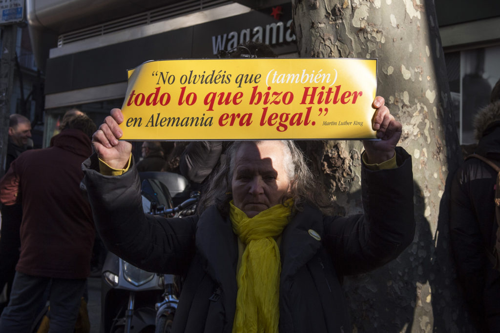 Concentración en apoyo a los líderes presos catalanes frente al Tribunal Supremo, en la calle Génova. ÁLVARO MINGUITO