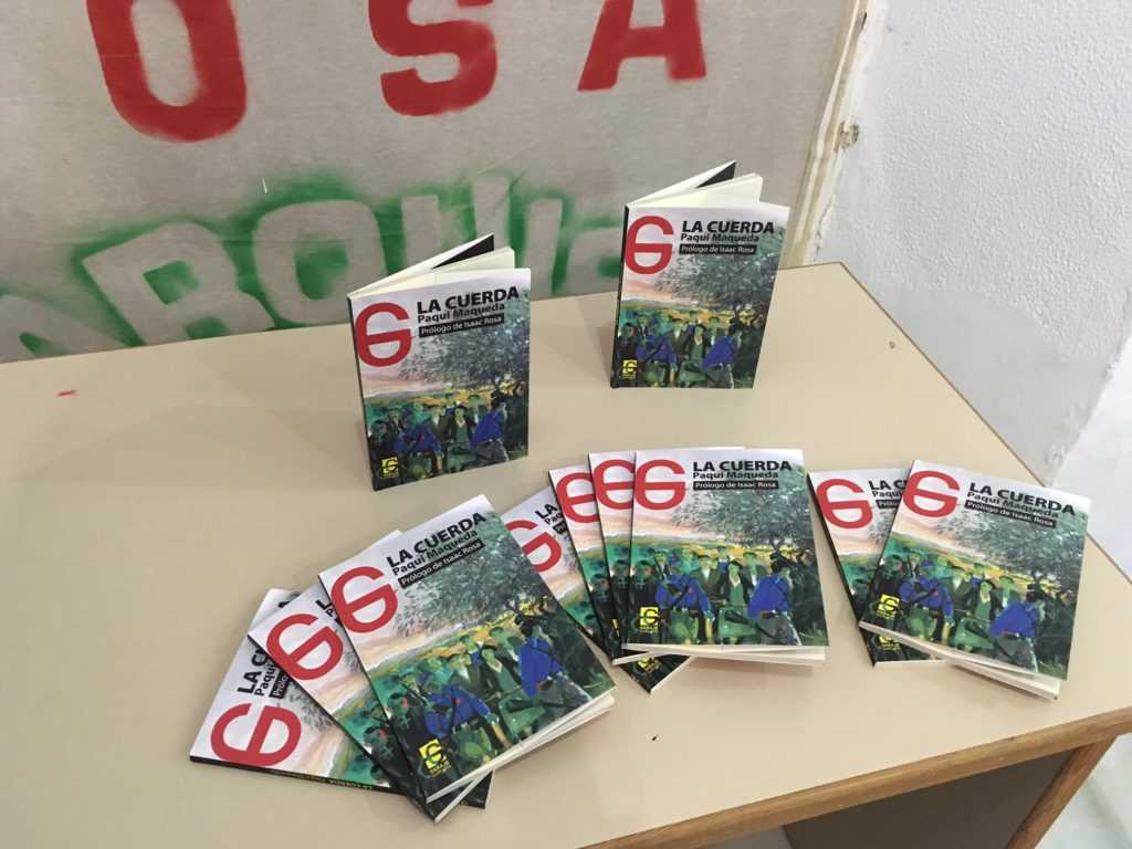 La Cuerda (El Garaje Ediciones) es un conjunto de voces que hablan, camino a su fusilamiento, de sus pensamientos, de su vida, de la intolerancia hacia todo aquello que, por ser distinto, es temido y debe ser aniquilado. Seis víctimas: un alcalde, una maestra, un jornalero, un hombre ya anciano, el dueño de una tienda de comestibles, una mujer embarazada. Una cuerda. Aquella a la que el bisabuelo de la autora, como tantas otras personas fusiladas, iba atado. Dos falangistas los escoltan. Los acompañan un sacerdote. El señorito del pueblo señala el camino. “Que lo haga Paqui Maqueda no sorprende a quienes la conocemos desde hace años y sabemos de su compromiso con la memoria colectiva y su resistencia a que el pasado se cierre en falso”, escribe en el prólogo Isaac Rosa.