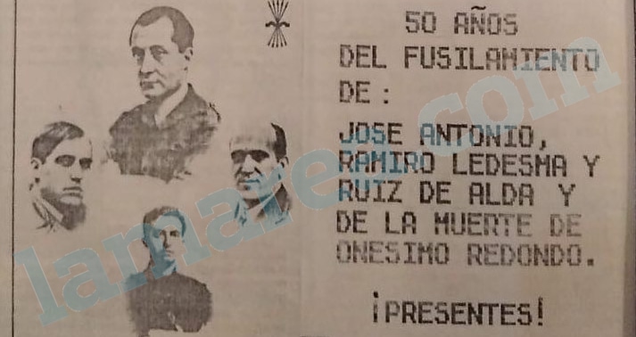 Es parte de un artículo escrito en 1986 en el Boletín Así (Noviembre 1986. Ciudad Lineal. FE-JONS) sobre el recuerdo de los militantes históricos de Falange fusilados como José Antonio Primo de Rivera, Ramiro Ledesma y Julio Ruiz de Alda, además del recuerdo de Onésimo Redondo por el 50º aniversario del asesinato del fundador de Falange.
