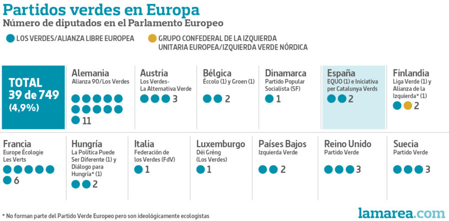En España, los llamados partidos verdes no han terminado de cosechar gran protagonismo en la escena política. Este mismo martes, en la apertura de la legislatura, se oyeron risas cuando el diputado de Equo Juantxo López de Uralde, en su toma de posesión, añadió: «Por todo el planeta». Mientras, fuera del hemiciclo diversos colectivos exigían al Gobierno una declaración urgente de estado de emergencia climática. En general, la situación es similar en el resto de la Unión Europea, donde las formaciones ecologistas están presentes en 15 de los 28 países.