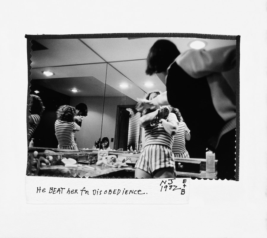 Cuando vemos sus fotografías de mujeres siendo atacadas, madres con ojos amoratados abrazando a sus criaturas, un niño gritándole al padre mientras es arrestado por policías, mujeres consolándose mutuamente, recibiendo clases de autodefensa, llorando la muerte de sus amigas… Cuando vemos a víctimas y victimarios leyendo juntos libros sobre violencia machista para salir de esa situación destructiva, hombres llorando en cursos de reeducación reconociendo que están reproduciendo la brutalidad que vieron emplear a sus padres contra sus madres… Cuando vemos mujeres encarceladas por haber matado a sus maltratadores y violadores esposos o novios para proteger a sus hijos y a sí mismas, y vemos en los pies de foto 1982, 1986, 1992… es inevitable preguntarnos si, a base de repetir el concepto ‘violencia de género’ –sin querer ver lo que de verdad es la violencia de género–, hemos difuminado lo que supone: temblor en el estómago cuando se escucha introducir la llave en la puerta, alivio cuando parece que el susodicho no tiene un mal día, esfuerzo para que nada se tuerza, para que nada le haga explotar, y gritar; suplicar entonces que no despierte a los niños, «por favor», –y “encima voy a tener que bajar la voz en mi propia casa después de partirme el lomo todo el día”–, y objetos volando, patadas en la barriga, «en la cara no, por favor», así que los tirones del pelo…