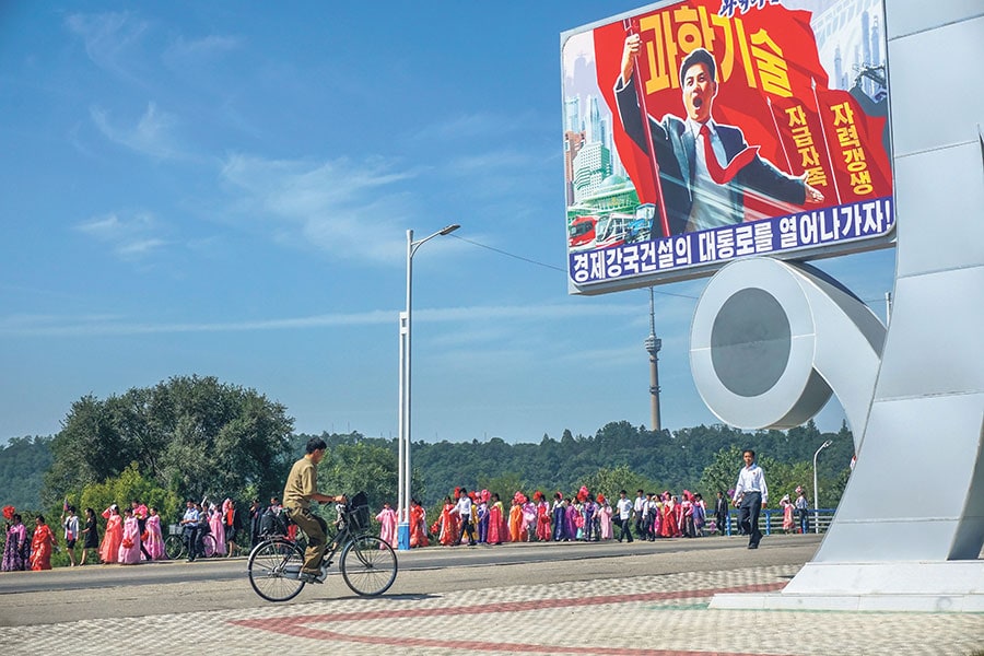 El equipo que te acompaña se aloja en el mismo hotel que te asigna el gobierno. No está permitido salir sin su compañía, y todos los traslados se hacen en su vehículo, que ante la sensación de estar recorriendo uno de los países más herméticos y desconocidos del mundo, termina convirtiéndose en una especie de nave espacial desde la que contemplar la cotidianidad de un pueblo que, ya sea a pie, en bicicleta, tranvía o metro, muestra brío y determinación en su actitud; dignidad en el andar de las mujeres, alzadas todas ellas sobre tacones y faldas entalladas a la cintura; diligencia en el caminar de ellos. Pero esta vitalidad es especialmente visible en la capital, una ciudad de 2,5 millones de habitantes en la que reside la clase más beneficiada por el régimen de un país donde Amnistía Internacional estima que hay unas 120.000 personas encarceladas en campos de prisioneros por razones políticas.