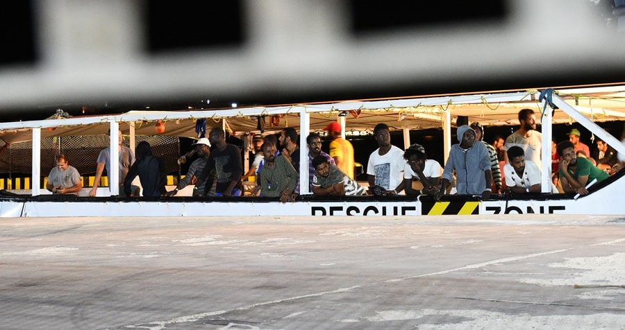 Llegada del barco Open Arms a la costa de Lampedusa. REUTERS/Guglielmo Mangiapane