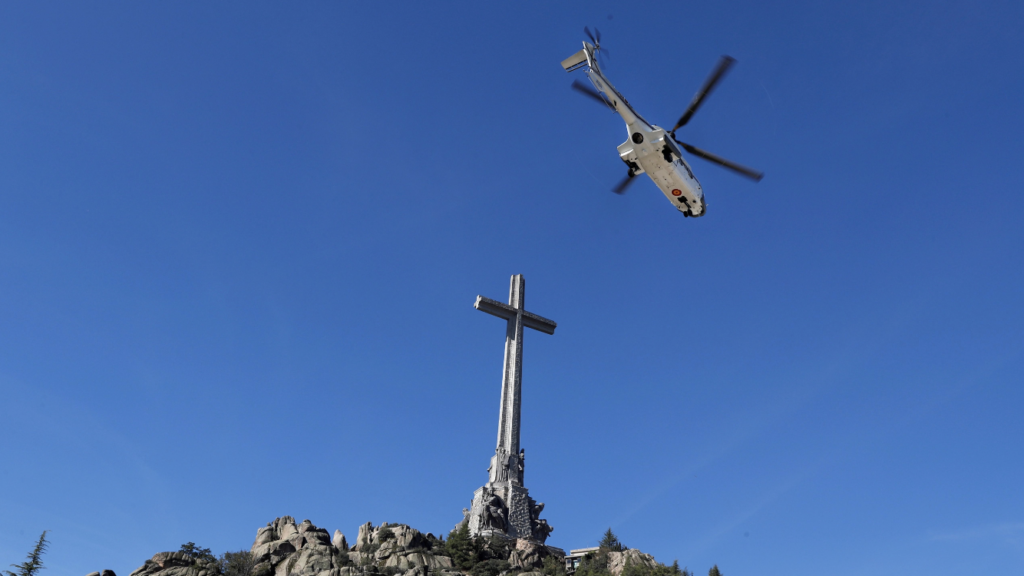 El helicóptero que ha trasladado los restos de Franco desde el Valle de los Caídos a Mingorrubio. J. J. GUILLÉN / POOL REUTERS