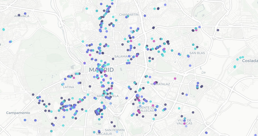 * Mapeo de centros educativos y casas de apuestas de Madrid, con niveles de renta, tanto a nivel de barrio como de secciones censales.