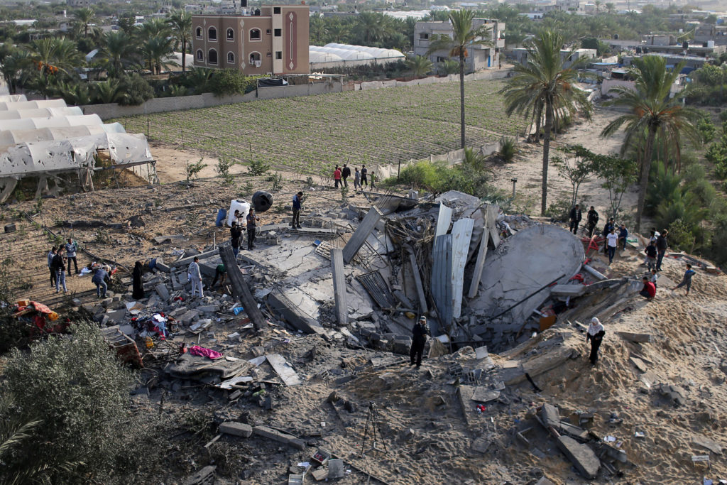 Un grupo de palestinos alrededor de los restos de una casa, destruida por el Ejército israelí. REUTERS / IBRAHEEM ABU MUSTAFA