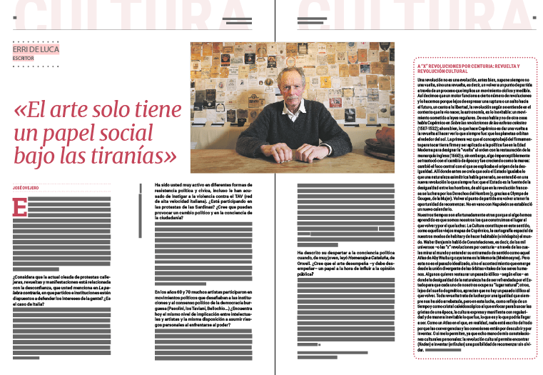 En Cultura, los coordinadores José Ovejero y Laura Casielles han elaborado un especial protestas: las huelgas y la belleza en Francia, al boom editorial del procés en Catalunya, la revolución de las Sardinas y la visión de Erri de Luca, Líbano, Bolivia… Como adelanto editorial, un extracto del nuevo libro de Gabi Martínez: Un cambio de verdad (Seix Barral), que saldrá publicado el 24 de marzo.