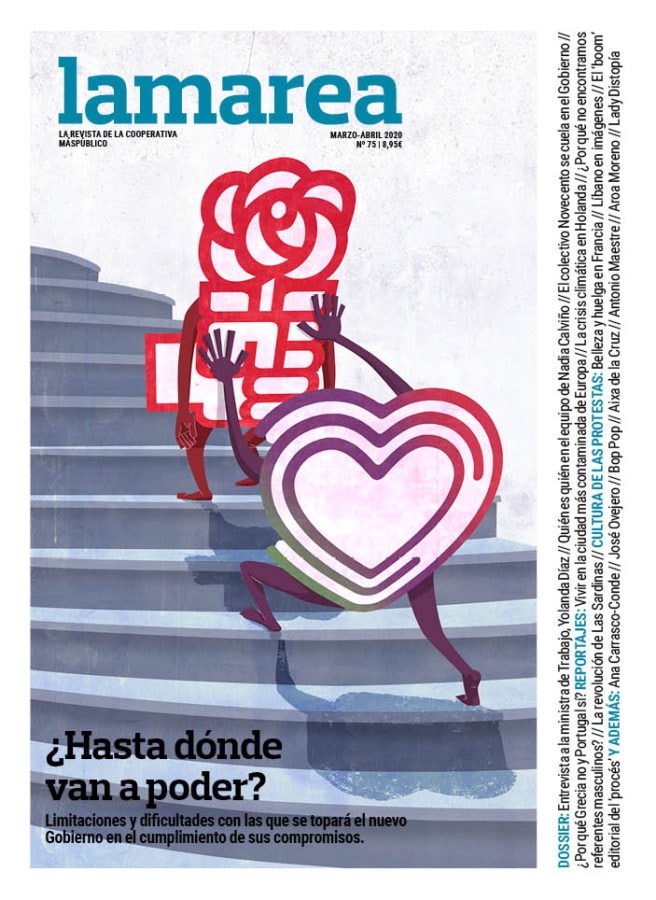 Es probable que cuando estés leyendo esta revista, el Gobierno haya adoptado alguna medida más de las pactadas en el acuerdo de coalición entre PSOE y Unidas Podemos –o se haya producido algún desacuerdo más–. La rapidez con la que se aprobó la subida del salario mínimo –aunque por debajo de los 1.200 euros prometidos–, con el aval de los empresarios, insufló esperanzas en algunos sectores de la izquierda y bajó los humos en algunos sectores de la derecha. La ministra de Trabajo, Yolanda Díaz, lo dice claro en la entrevista que incluimos en esta revista: “Jamás me cambiaré de bando. Siempre estaré con los de abajo”. En otra entrevista, la ministra de Igualdad, Irene Montero, afirmó: “Si para subir el SMI hay que aplaudir al rey, lo haremos”.