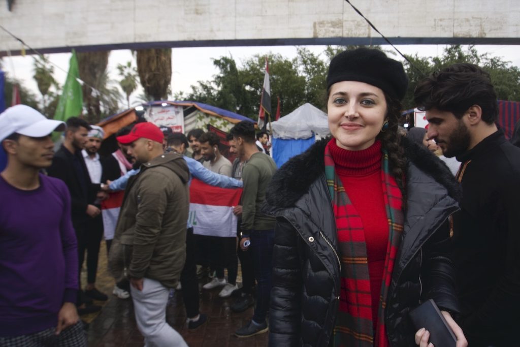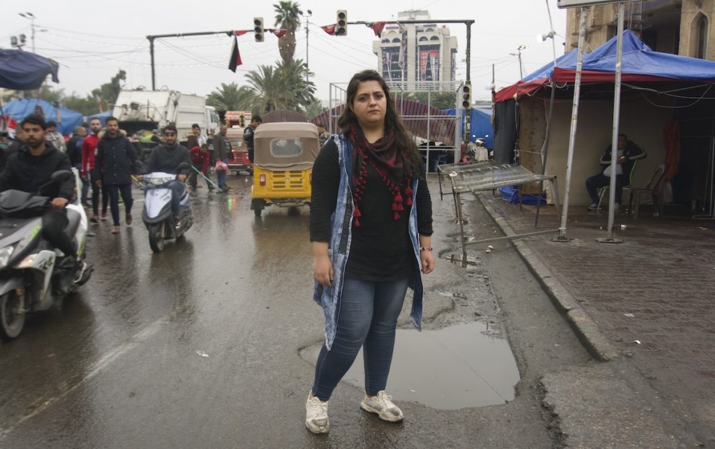 Batod H. Ali tiene 20 años, una larga melena al viento, estudia traducción e interpretación y es voluntaria de la ONG Mujeres de Bagdad. Recuerda que un día de octubre, una joven temía bailar con el resto de los manifestantes en la plaza. Cuando ella y otras amigas la animaron, unos chicos crearon un cordón a su alrededor para que se sintiera segura. Ellas bailaban desenfrenadamente en el centro mientras ellos, de la mano, las protegían de posibles recriminaciones por una actitud que hasta entonces no era admitida socialmente. No hubo improperios. “Recuerdo que me preguntaba, ¿estoy realmente en Iraq?”, cuenta entre risas Batod.