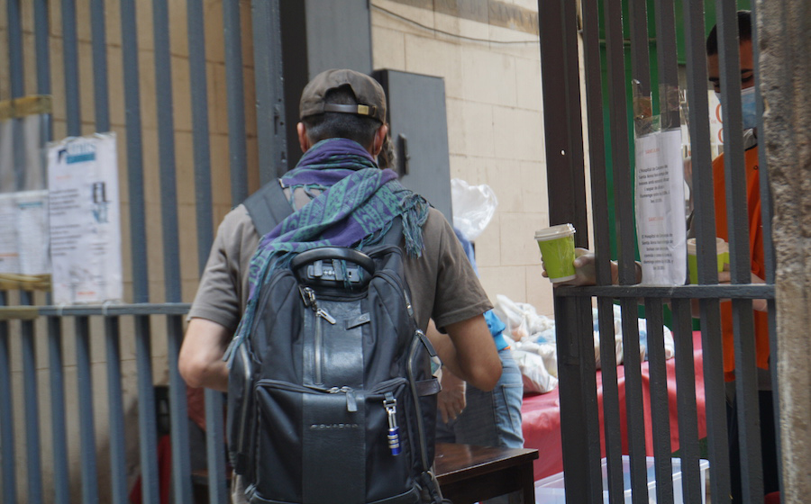 “Damos unas 250 comidas al día, a mujeres y hombres de todas las edades, que incluso nos derivan los Servicios Sociales y otros recursos porque no les pueden dar asistencia”, explica este joven vestido con una sudadera naranja con capucha de rayas y un protector de plástico cubriéndole el rostro. El Ayuntamiento de Barcelona y Cáritas les proporcionan la comida y la cena para su reparto. Santa Anna aporta el desayuno gracias a las donaciones que recibe, así como un extra de comidas que les entrega la cadena de restaurantes Sagardi. “Y café caliente, que agradecen mucho”, concluye.