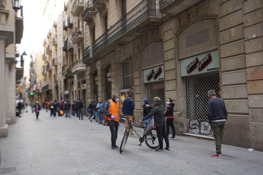 Recorrer Barcelona estos días conlleva un extraño ejercicio de transitar paisajes desiertos solo salpicados por disciplinadas y silenciosas colas de gente: colas para entrar en un supermercado, o para comprar pan, tabaco y mascarillas. Pero en estas hileras, los rostros no esquivan las miradas, ni agradecen esa suerte de anonimato que envuelve a los que esperan de manera grupal. En cambio, en las colas del hambre que la pandemia de COVID-19 ha dejado al descubierto en nuestras urbes y engordado a base de desempleo, no hay ensimismamiento y sí una actitud vigilante ante la vergüenza: la vergüenza a ser vistos como pobres apremia. Por eso, el reparto es rápido. Los rostros cambian, pero la longitud de la cola se mantiene. La desigualdad era un reptil esquivo y correoso que quien quería podía no ver hasta la llegada de este virus global que nos ha atravesado a todos como si de una prueba de contrastes se tratase.