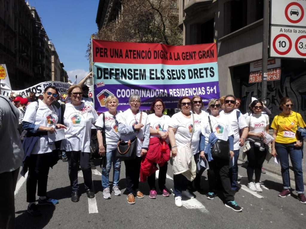 La Coordinadora 5+1 ha registrado una demanda ante la Fiscalía Provincial de Barcelona en la que denuncia lentitud en aplicar medidas de prevención en la propagación del virus y discriminación por razones de edad para acceder a la asistencia sanitaria. La plataforma agrupa a familiares de residentes que piden se esclarezcan responsabilidades.