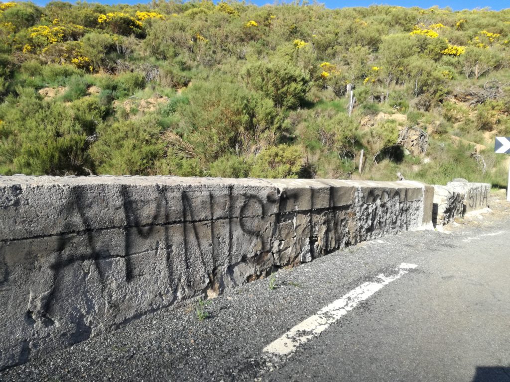 Incongruente, desubicada, improcedente, anacrónica, fantasmal, pensé la primera vez que la vi. También pensé que la historia me había perseguido hasta aquí, donde menos lo esperaba, una carretera comarcal de Ávila por la que ni siquiera en la era prepandémica transitaban coches. Me imagino a un par de chavales montañeros de estética borroka (puede ser 1988 o 2001, no importa), con sus botes de spray en la mochila y dibujando con torpeza este «AMNISTIA OSOA» que llenó las paredes de mi pueblo, ese sí, en Euskadi, durante décadas. La primera vez que vi la pintada fue hace meses, cuando la vida era otra y Cataluña o el Brexit ocupaban los titulares diarios.