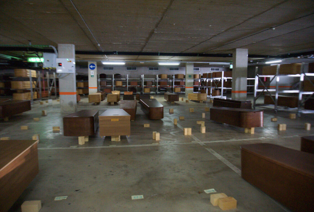 Fernández es uno de los trabajadores de Servicios Funerarios de Barcelona-Mémora, la empresa que se vio obligada a convertir el parking del tanatorio de Collserola en una morgue para albergar los casi 200 cadáveres que llegaron a recibir diariamente durante las semanas más devastadoras de la COVID-19. El 17 de mayo fue clausurado ante la caída de muertes, pero están preparados por si hubiese que reabrirlo ante nuevas oleadas de contagios.
