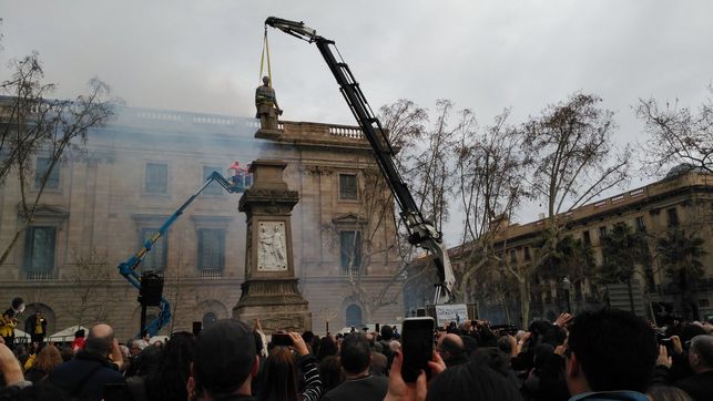 El Ayuntamiento de Barcelona retiró la estatua del esclavista Antonio López y López en 2018 (Barcelona en Comú).
