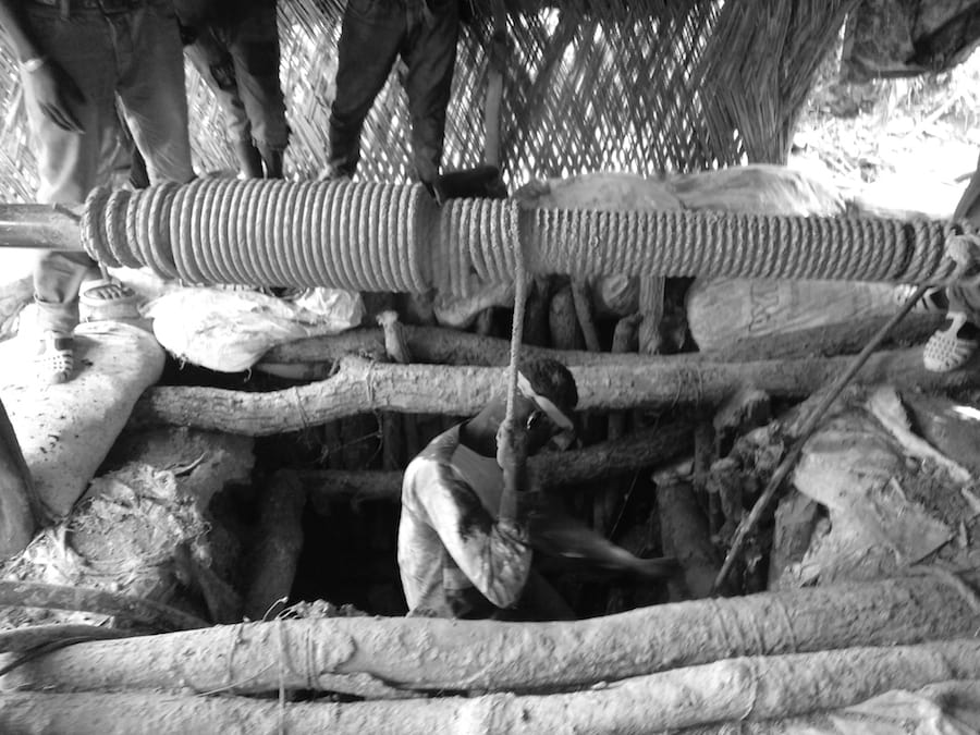 Con solo 17 años, Marcel es un minero experto. Coge su linterna y con una goma elástica se la coloca en la cabeza. Agarrado a una soga desciende unos 120 metros. Como toda agarradera, sus manos y pies. No cuentan con ningún medio de seguridad. Así, jóvenes de entre 12 y 20 años arriesgan a diario su vida para extraer oro. Trabajan sin horario, cuando más saquen, más cobran. «Trabajo aquí porque tuve que elegir entre estudiar y pasar hambre. No quería seguir pasando hambre», explica mientras nos pide que salgamos del pozo. A sus compañeros no les agrada la presencia de periodistas.