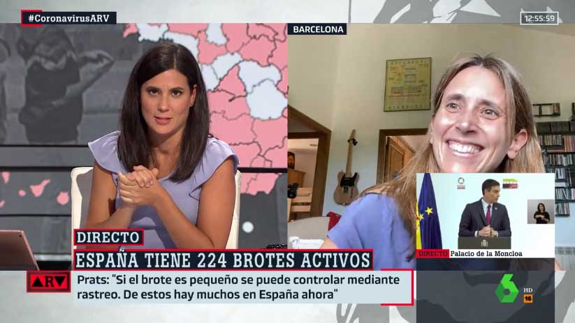 Esta mañana, la investigadora de Biología Computacional Clara Prats fue interrumpida por su hija mientras intervenía en el programa Al rojo vivo, en La Sexta. «No tenemos ningún problema, valoramos mucho lo que está haciendo […] Es una crack. Nos está hablando, se acuerda de los datos y encima está atendiendo a su criatura», le ha respondido la presentadora y periodista María Llapart a la entrevistada. Ante la insistencia de la niña, Llapart ha pedido parar la entrevista para que atendiera a su hija: «Lo primero es atender a los niños […] Quiero que atienda a su bebé, que todo lo demás es secundario», ha proseguido la conductora del programa.