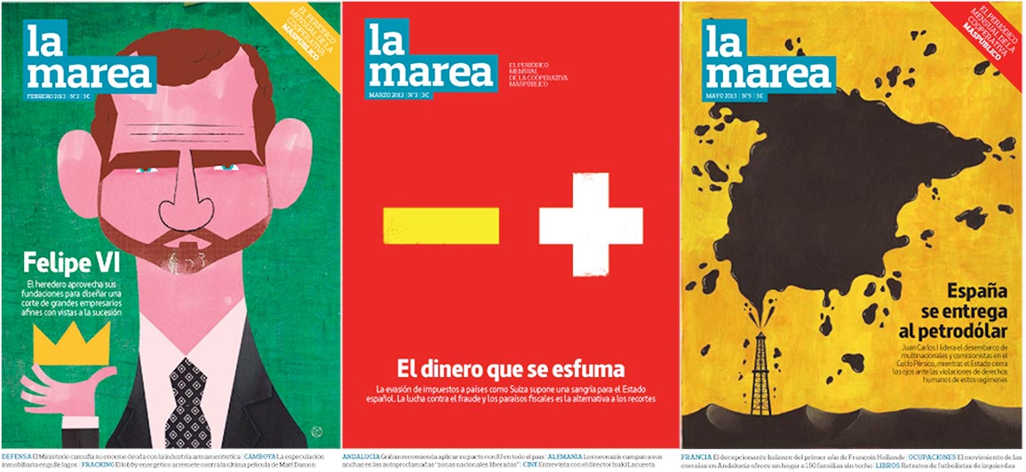 Revisando el histórico de revistas encontré que allá por febrero de 2013, cuando Juan Carlos I seguía siendo el guía espiritual de España, en La Marea ya ponían el foco en su hijo y en la corte de grandes empresarios afines que le rodeaban. Esa fue la segunda revista que editó esta cooperativa. Pero, ¿sabes cuál fue la tercera? Una sobre la evasión de impuestos a países como Suiza. Podría ser una casualidad si la quinta revista bajo la marca La Marea no tratase sobre cómo Juan Carlos I lideraba el desembarco de multinacionales y comisionistas en el Golfo Pérsico.
