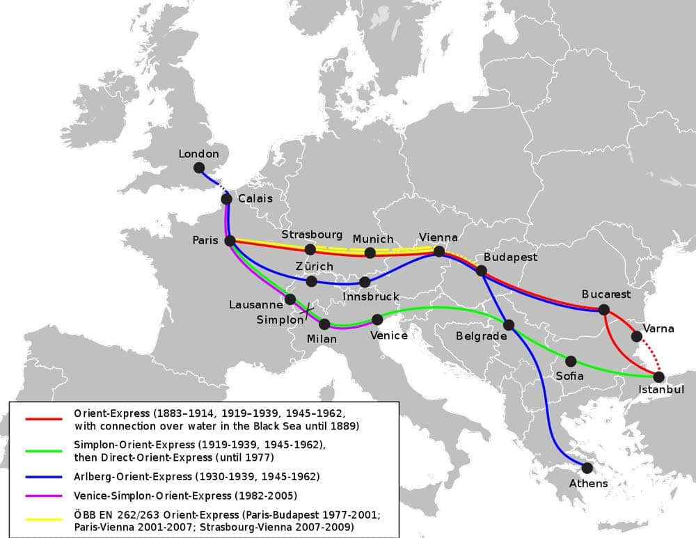 Las diferentes rutas del Orient Express. WIKIPEDIA