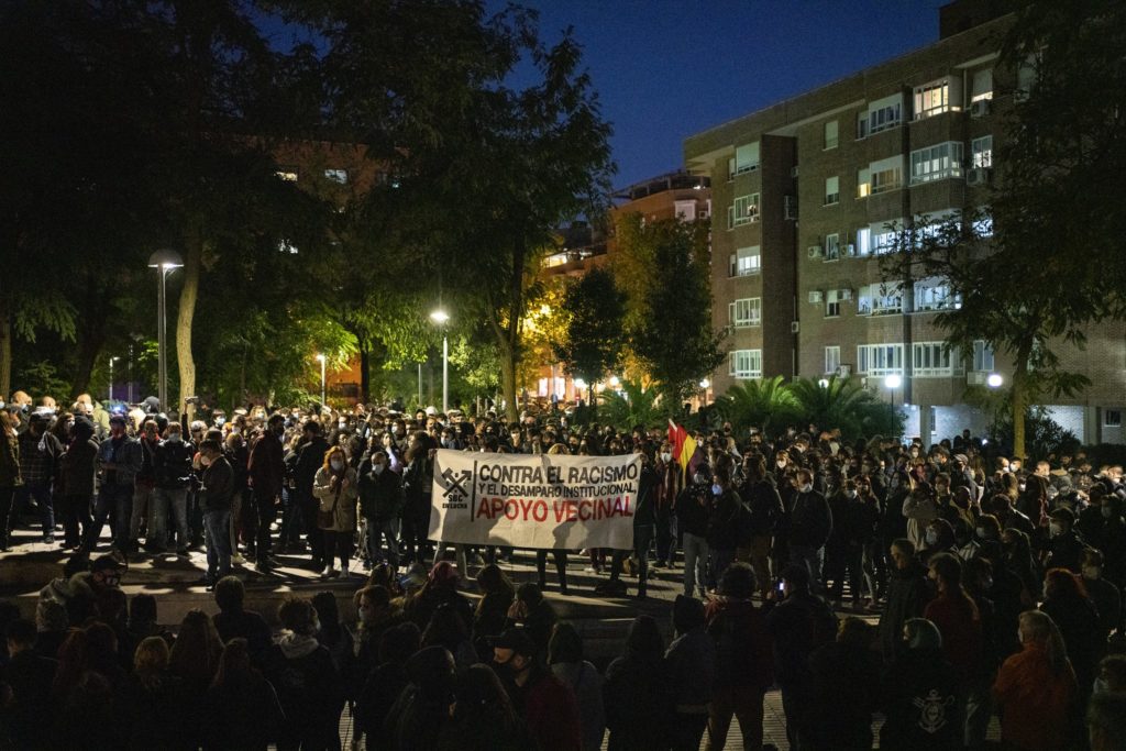 AUXILIAR ENFURECIDA | El pasado 16 de octubre, varios colectivos antifascistas de Madrid, organizaron una concentración en el distrito de San Blas-Canillejas. ¿El motivo? Visibilizar el auge de los discursos de odio en el barrio, esclarecer los hechos sucedidos días atrás, señalar a los medios de comunicación como principales responsables de la desinformación de la población y aunar fuerzas contra quienes promueven el racismo y la xenofobia. Desde hacía meses, un grupo de chicos extranjeros residentes en un piso de menores tutelado por la Comunidad de Madrid, sufría insultos y agresiones por parte de un grupo de neonazis organizados y conocidos en la ciudad. Así lo denunciaron y, en respuesta, sufrieron el ataque xenófobo que dio lugar a la concentración mencionada.