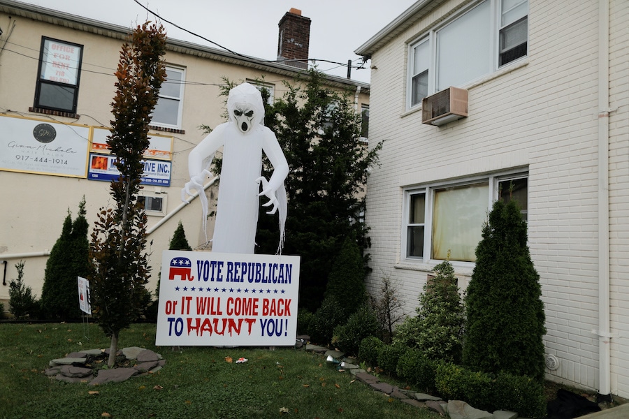 Decoración en una casa del norte de Staten Island: «Vota a los republicanos o vendrá a cazarte» (REUTERS/Andrew Kelly)