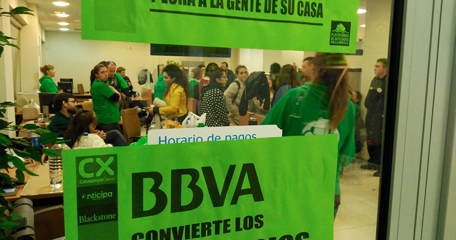 Foto durante la ocupación de la oficina de BBVA. PAH