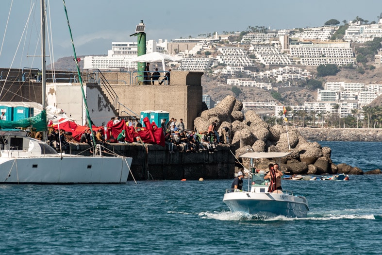 Para hacerse una idea de la gravedad de lo que está sucediendo en Canarias, en España, en Europa, basta con comparar dos datos. El Instituto Nacional de Estadística (INE) registraba en 2019 un total de 2.309 habitantes en Arguineguín. En varias ocasiones en los últimos días, en el pequeño espacio que conforma el muelle del puerto de Arguineguín -con una superficie de aproximada de 3.500m²-, ha habido allí hacinadas más personas que las que viven en todo el pueblo.