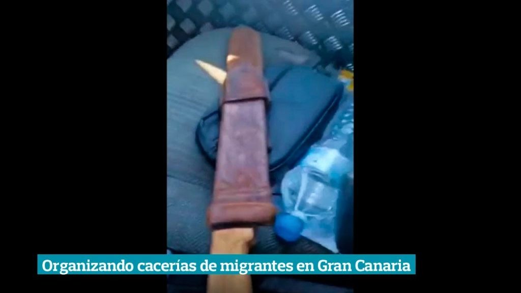 En uno de los vídeos, un hombre se graba en el interior de un vehículo exhibiendo un machete de grandes dimensiones. “Voy a dar un escarmiento al primer morito. Qué rico me va a saber”. Detiene su coche ante un joven magrebí. “Dile a tus amigos que se vayan de la puta isla”, le advierte. “Ese morito no vuelve a quedar con una tía en su puta vida”. Exhibe de nuevo el machete: “No lo voy ni a limpiar”. En varios de los documentos audiovisuales a los que La Marea ha tenido acceso se exhiben varias armas y mensajes racistas contra las personas migrantes.
