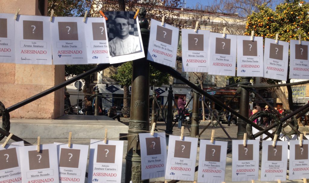 Una curiosidad. Los carteles de la foto corresponde a vecinos/as de la localidad de Dos Hermanas (Sevilla) y localidades vecinas (Sevillas, Los Palacios, etc..) que fueron fusilados en el termino municipal de esta localidad y que posiblemente muchos de sus restos permanezcan en la/s fosas/s comun/es del cementerio municipal y que año, tras año el Ayuntamiento se niega a poner sus nombres en el lugar. Es más esos carteles (formato A4) plastificados ocuparon ese lugar para más tarde desaparecer tras la orden del gobierno local a los trabajadores del cemenerio.