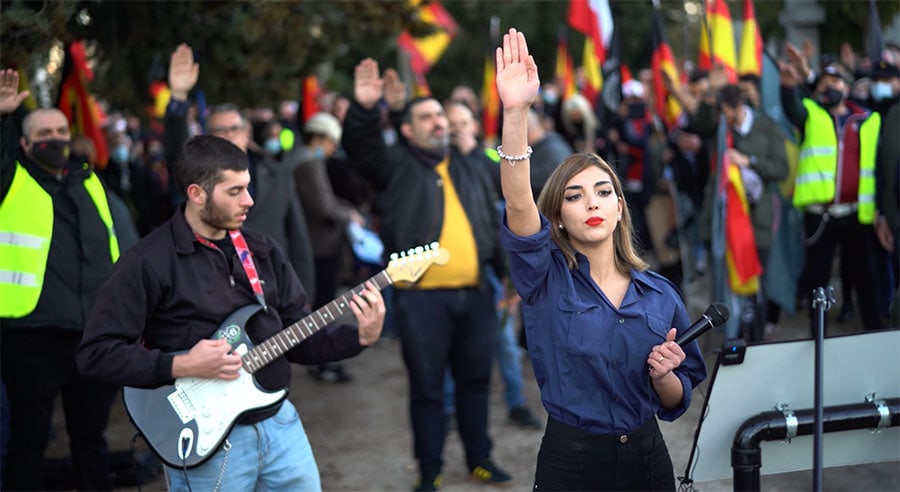 “Es nuestra suprema obligación luchar por España, luchar por Europa, ahora débil y liquidada por el enemigo. El enemigo siempre va a ser el mismo, aunque con distintas máscaras: el judío. […] El judío es el culpable y la División Azul luchó por ello”. Estas fueron las proclamas antisemitas pronunciadas por la joven de camisa azul, tal y como se puede ver en el vídeo desvelado por lamarea.com, que ahora podrían costarle hasta cuatro años de cárcel.