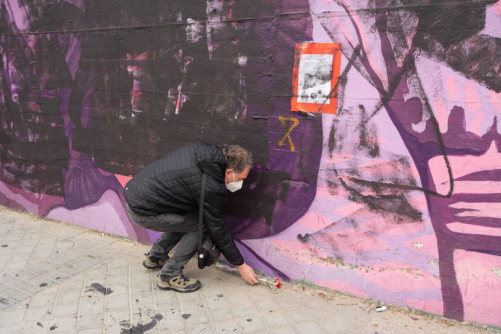 En noviembre del año pasado, apareció destrozado el homenaje a las mujeres asesinadas por violencia machista ubicado en la Calle Alcalá de Madrid. Se trata de la obra Camino de flores, de Concha Mayordomo, formada por ramos de flores blancas con tarjetas en las que se puede leer unas iniciales, una fecha y un lugar por cada uno de los asesinatos. Cuarenta ramos en total por cada una de las víctimas de 2020.