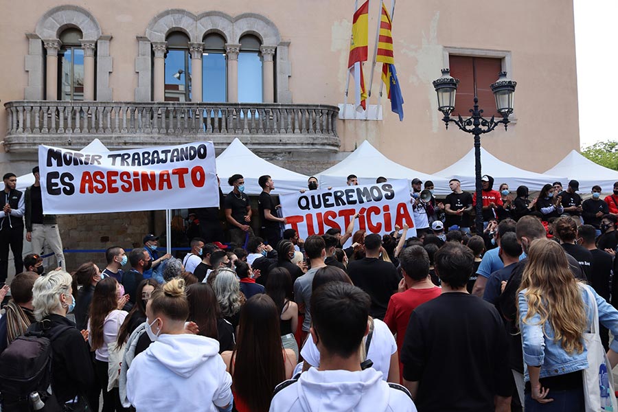 La manifestación ha ido desde las puertas de la empresa hasta el Ajuntament. La mayoría de cánticos han sido de apoyo a la familia, para señalar a la empresa como asesina y en contra del modelo de trabajo actual: «No son empresarios, son terroristas» o «Morir trabajando es asesinato», son algunos ejemplos.