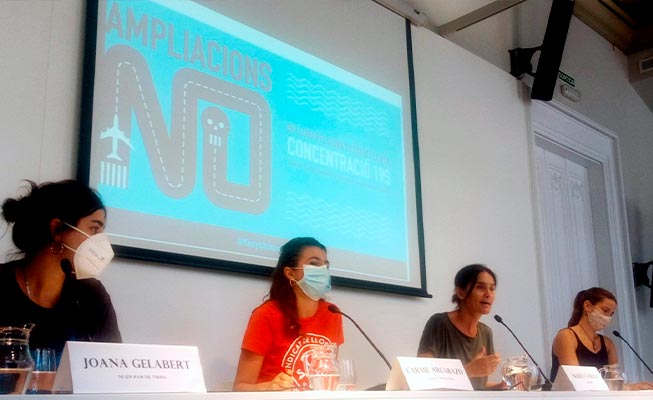 Zeroport es una plataforma social surgida hace dos años para oponerse a los planes de ampliación de las dos grandes infraestructuras de transporte del área de Barcelona: el puerto y el aeropuerto. En julio pasado presentó un manifiesto contra la ampliación del aeropuerto que firmaron más de 300 entidades, y en la presentación de esta mañana se ha rodeado de algunas de ellas: representantes del Sindicat de Llogaters, la Xarxa de Justícia Climàtica y Ni un Pam de Terra han explicado las razones por las que se suman a la movilización.