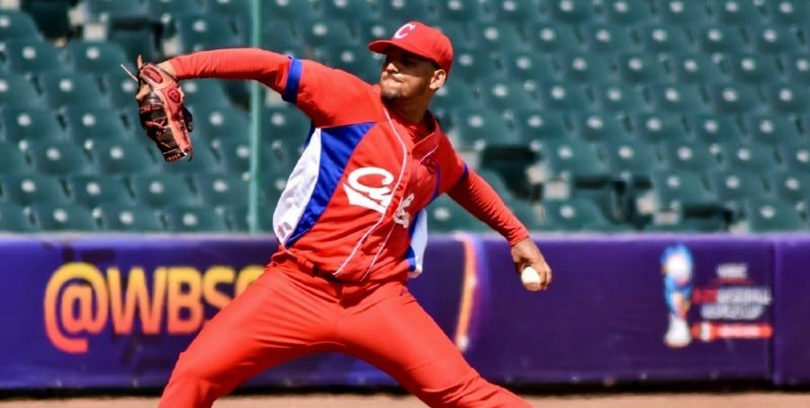 La gran actuación de Naykel Cruz desde el montículo fue fundamental en la victoria de Cuba sobre la República Dominicana. © WBSC
