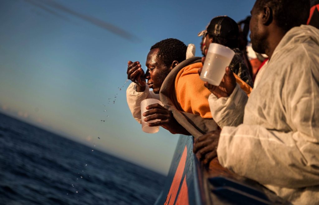 Imagen de uno de los rescatados en la primera misión del ‘Aita Mari’. JAVI JULIO / NERVIO