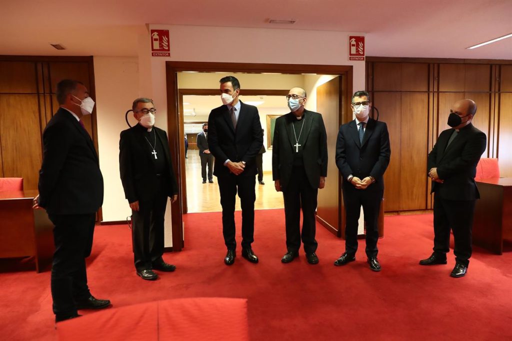 El encuentro entre Pedro Sánchez y el presidente de la Conferencia Episcopal. Foto: Pool Moncloa/Fernando Calvo