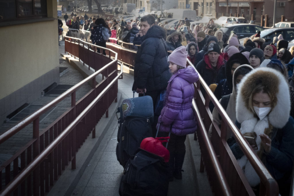 Son las 12.30 del mediodía del viernes 18 de marzo. Buena parte de los medios internacionales abren sus páginas con el bombardeo ruso en las inmediaciones del aeropuerto de Leópolis (Lviv), a apenas 80 kilómetros de donde nos encontramos. Y unas trescientas personas esperan poder subirse a un tren que les lleve de vuelta exactamente a esta ciudad para, en muchos casos, continuar con su regreso a sus hogares en distintos lugares de Ucrania.