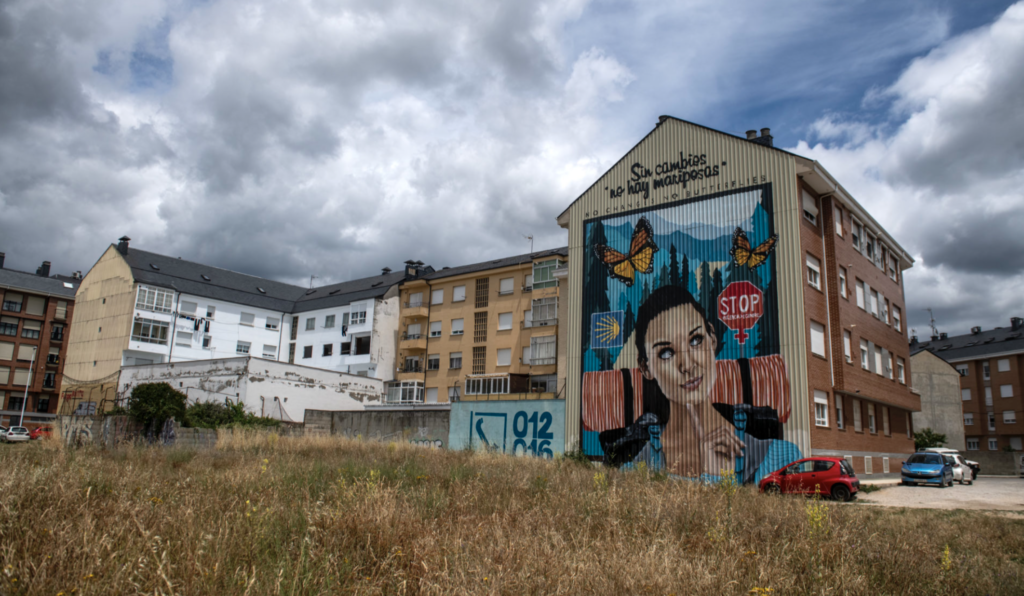 Hay una pintura en un muro de Ponferrada en el que se ve a una chica con una mochila, la concha del Camino de Santiago y un mensaje: «Stop a la violencia machista». La obra, que pretende concienciar a las personas que pasan por el albergue de la localidad leonesa, fue creada por el artista berciano Asier Vera. Y justo en una de las calles que desembocan en el consistorio, sobre el suelo, como en Hollywood, luce una placa dedicada a la dramaturga Laila Ripoll, que ha analizado en su obra los efectos de la violencia de género. Es julio de 2021. Por la ciudad acababan de pasar varias expertas en una nueva edición de la Universidad Feminista de Ponferrada.