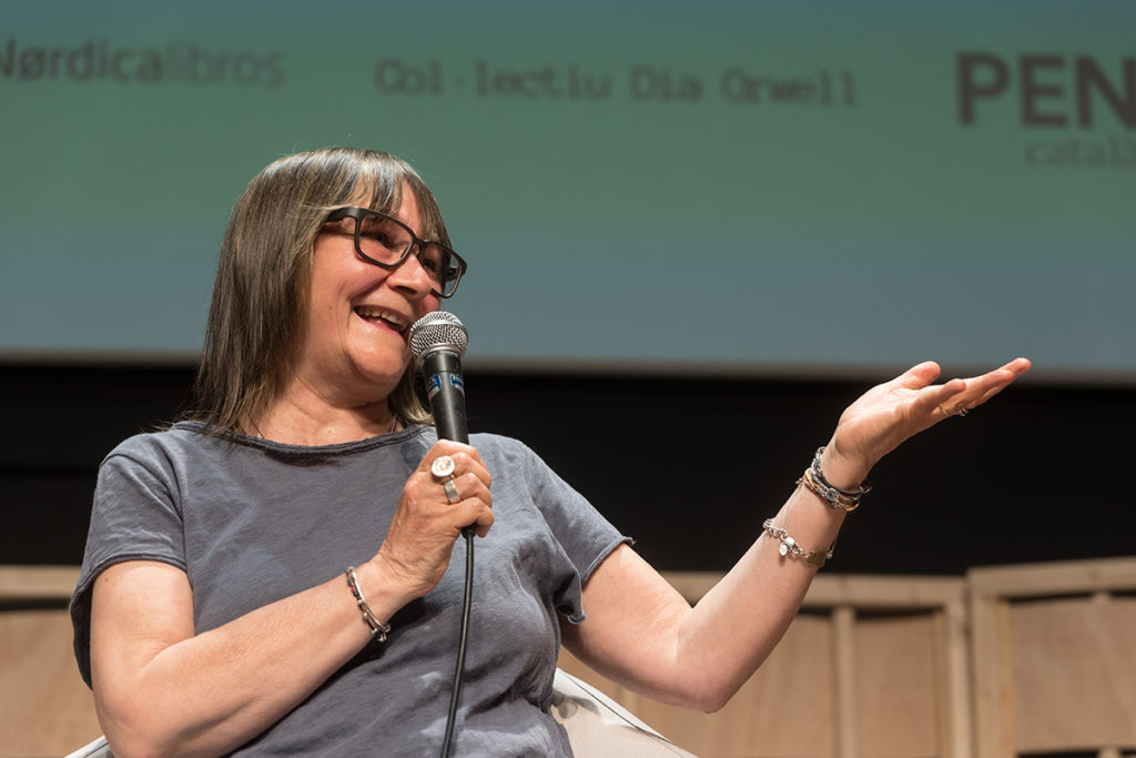 Su visita a Barcelona se enmarca en los actos de celebración del Día Orwell. La autora escocesa ha dialogado con la realizadora Sarah Wood y la periodista cultural Anna Guitart en el teatro del CCCB sobre los temas que aborda en su cuarteto estacional de novelas: Otoño (2016), Invierno (2017), Primavera (2019) y Verano (2020); publicadas en catalán por Raig Verd con traducción de Dolors Udina y en español por Nórdica Libros con traducción de Magdalena Palmer.