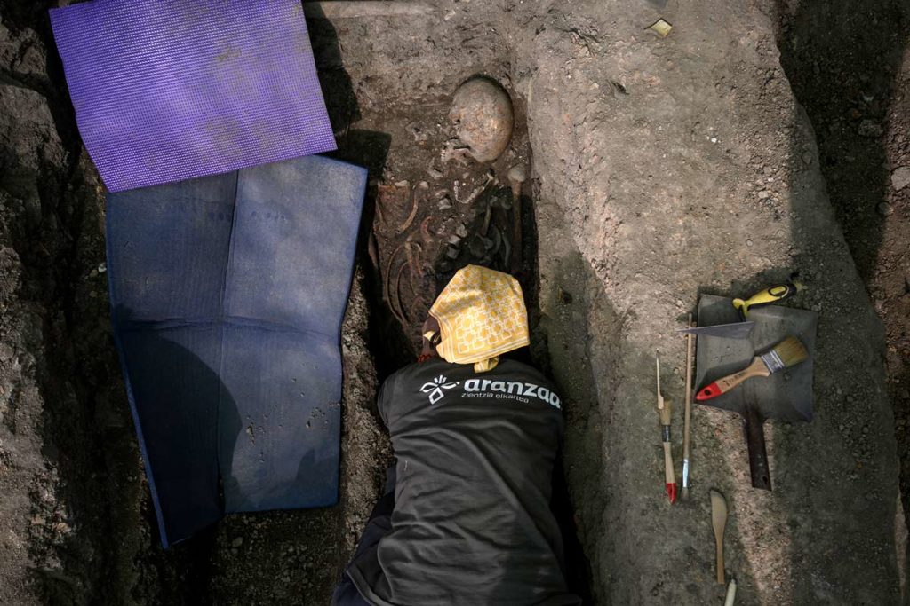 Tanto las compañeras y compañeros de la Asociación Comisión de la Verdad de San Sebastián de los Reyes como las personas que integran la Sociedad de Ciencias Aranzadi que se ocupan de los trabajos de exhumación empiezan a acusar el cansancio. Después de siete días de intenso trabajo, más de 60 toneladas de tierra extraída, el hallazgo de once cuerpos, seis de ellos ya exhumados y en cajas para llevar al laboratorio, algunos con signos claros de traumas compatibles con el paso de un proyectil de arma de fuego, y otros objetos tan significativos, como una bala de las que usaba la guardia civil en la época para dar el tiro de gracia, se sacan fuerzas de flaqueza.