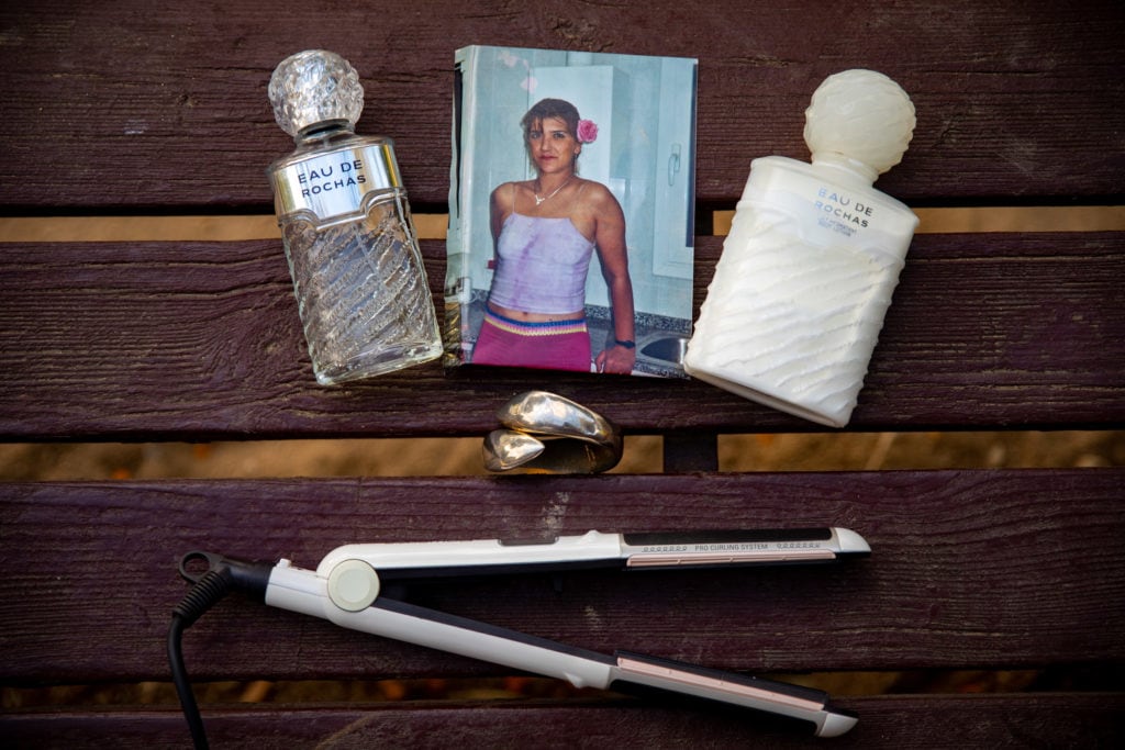 Un perfume, una crema, una pulsera y una plancha del pelo son, junto con las fotos de Emy, los objetos que Marga guarda de su hermana. KIKE RINCÓN / PORTODAS