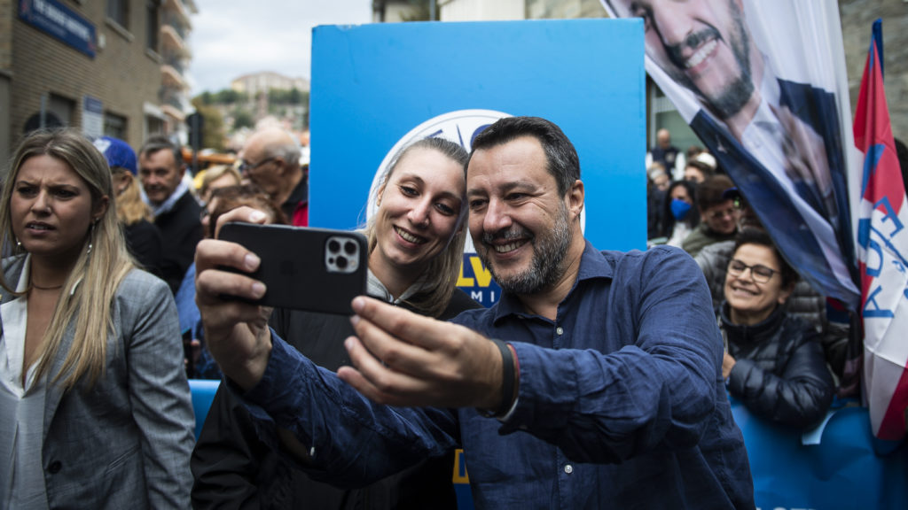 Una joven se hace un 'selfie' con Salvini en un acto de la campaña electoral. Nicolò Campo / Sipa USA / Vía Reuters