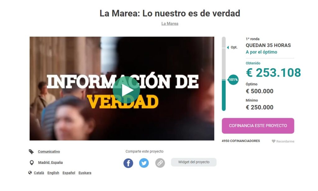 ‘La Marea’ consigue el objetivo mínimo de su crowdfunding