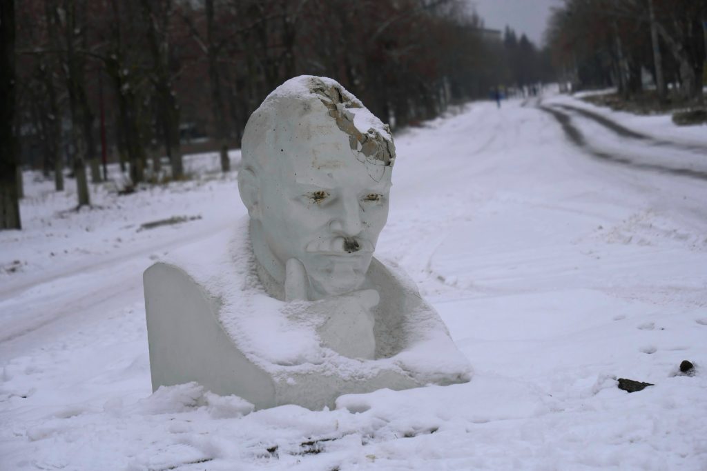Fuera de la iglesia, ocupando la avenida principal, hay un gran busto de Lenin al que le han pintado un bigotito como el de Hitler. De color blanco, y peligrosamente mimetizada con la nieve, “sobre su cabeza los proyectiles de rusos y ucranianos llevan volando meses”, asegura Luba, una de las poquísimas jóvenes que aún permanecen en Lyman.